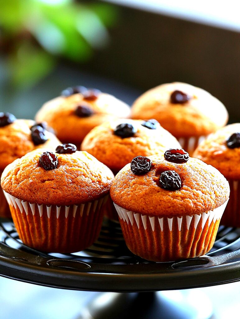 Indulge in these delectable pumpkin muffins studded with juicy raisins. A delightful treat crafted by a culinary wizard.
