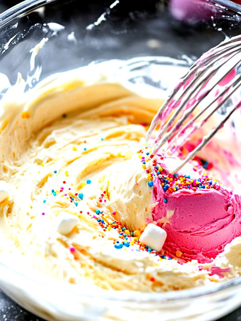 Indulge in a frosting that mirrors the sweet delight of birthday cake ice cream. Perfect on fluffy angel food cake for a heavenly treat your loved ones will adore!