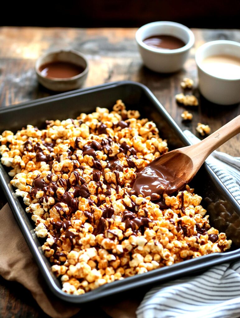 3. What type of chocolate is used to add a decadent twist to the caramel corn?